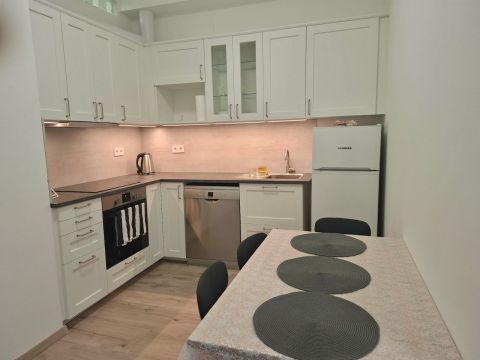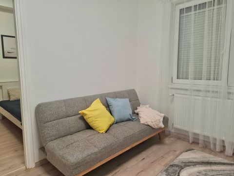 Kiadó hosszútávra a XIV.Nagy Lajos kir. út - Erzsébet kir.-né útja kereszteződésénél egy csendes belső kertre néző, 42m2-es, 1,5 szobás, felújitott állapotú, földszinti, egyedi mérős házközponti fűtéses, gépesített, bútorozott, klímás társasházi téglalakás.A redőnyös szobák és az étkezős konyha laminált parkettás, a kádas fürdőszoba és a külön WC járólapos. A lakás gépesitése: száritós mosógép, fagyasztós hűtőszekrény, 12 szem. mosogatógép, mikrósütő, inverteres hűtő-fűtő klíma, konyhai szagelszívó.Közös költség + rezsi együtt kb. 30.000Ft/hó. A lakásban állat nem tartható, dohányzás csak a lakáson kívűl kijelölt helyen lehetséges.A társasház gépkocsi parkolós belső kerttel rendelkezik, felszíni parkoló igény szerint külön bérelhető.A lakás bérleti díja: 240.000Ft/hó + rezsi.Kaució: + 2 havi bérleti díj. A birtokbaadáshoz közjegyző által ellenjegyzett 'Kiköltözési nyilatkozat' szükséges. A lakás max. 2 felnőtt részére kiadó. A tulajdonos a bérlő kiválasztási jogát fenntartja magának.