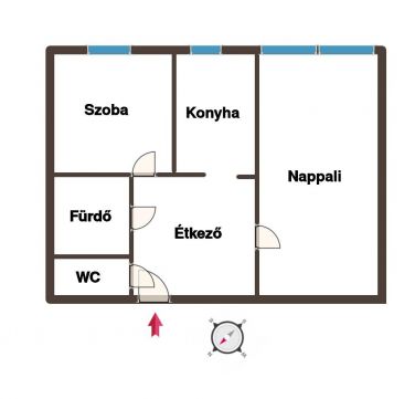 (kivétel a nappali, ahol jó állapotú fém keretes ablakok találhatók)