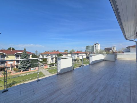 LUXUS PANORÁMÁS LAKÁS SIÓFOK ARANYPARTJÁN HATALMAS TERASSZAL, MEDENCÉVEL!