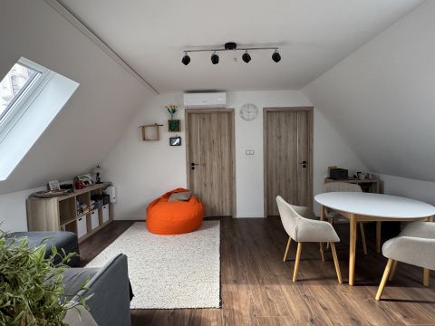 Budakeszi központjában, mégis csendes utcában felújított tetőtéri otthon eladó!
