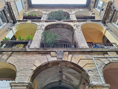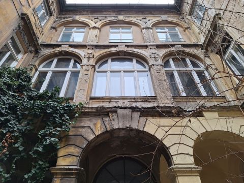 Kétszobás emeleti nagypolgári lakás hangulatos, mediterrán jellegű belső udvari kilátással