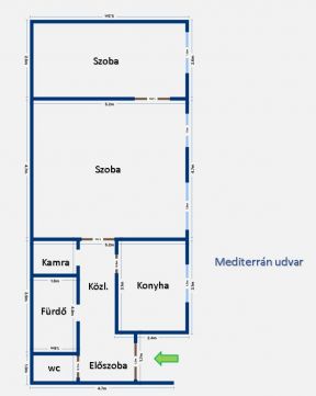 Elrendezése: 2 szoba, konyha, kamra, fürdőszoba, wc, előszoba/közlekedő.