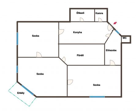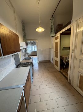 Eladó Budapest VIII. kerületében az Orczy úton, a Nemzeti Közszolgálati Egyetemhez és a Semmelweis Egyetemhez is közel, egy 1930-as években épült, 4 emeletes házban lévő, 90 nm-es (+ 2,6 nm-es erkély), 3 nagy szobás, konyhás-étkezős, jó elosztású (külön WC és fürdőszoba), körbejárható 1.emeleti lakás. A lakás lakható, rövid időn belül költözhető, de kisebb-nagyobb felújítások szükségesek lehetnek, ha igazán színvonalas lakásban szeretne lakni a jövendő tulajdonos. A szobák nagyon tágasak (3,5 m belmagasságúak), világosak, az ablakok már ki lettek műanyagra cserélve. A lakás relatíve nagy mérete miatt kiválóan alkalmas pároknak, akár több gyerekkel is, vagy befektetésnek is remek, hiszen több lakónak is kiadható. A közelben vannak fontos intézmények (iskola, óvoda, boltok a lakás alatt közvetlenül egy pékség) és a tömegközlekedés is kiváló, busz, villamos és metró megállók néhány méteren vagy percen belül találhatók.