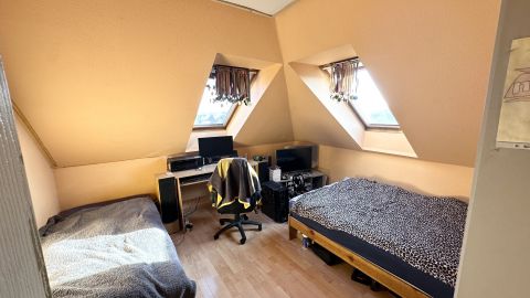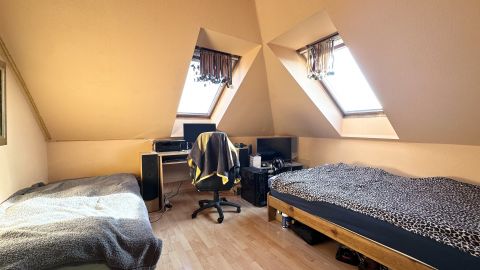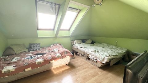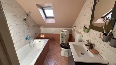 A helyiségek: 4 szoba, két fürdőszoba, külön WC, konyha+étkező, előtér, közlekedő és belső lépcső.