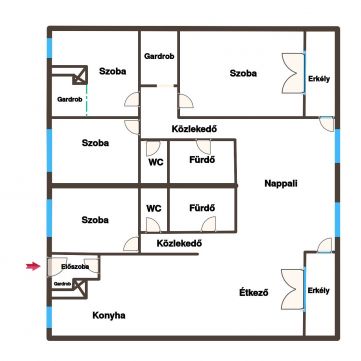 Amerikai konyhás nappali + 4 külön nyíló hálószoba