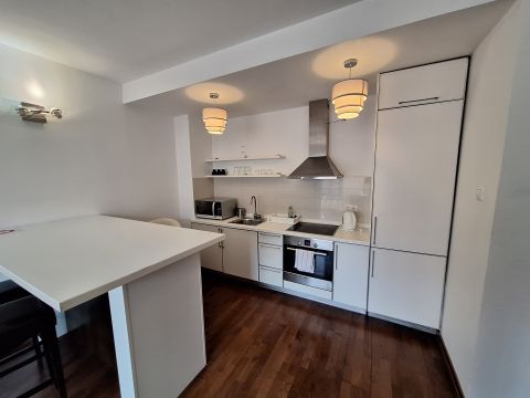 A 43 nm-es, 1+1 szobás lakás teljesen berendezett és felszerelt, így azonnal költözhető. A nappali és a hálórész kényelmes bútorokkal berendezett: kanapé, ágy, szekrények, székek, valamint televízió is rendelkezésre áll.