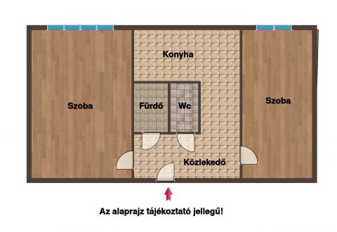 Az alapterülete 48 m2, az elrendezése praktikus, 2 kényelmes méretű , külön bejáratú szoba, konyha, előszoba, külön fürdő és wc áll rendelkezésre.