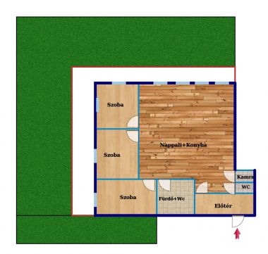 * nappali + 3 külön nyíló szoba