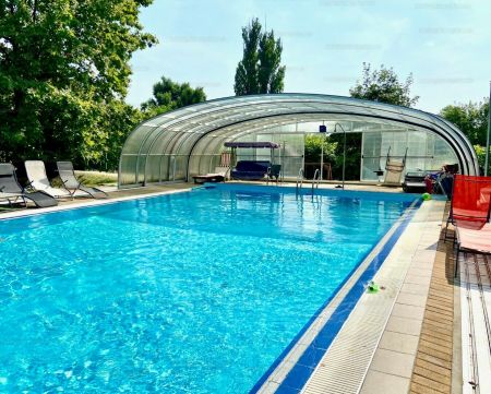 Az ingatlan egy rendezett, liftes, 024 órás portaszolgálattal működő, medencés lakópark földszintjén található, ahol a lakók kényelmét gondozott kert, játszótér és közös használatú medence biztosítja.
