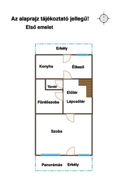 A földszinti részen terasszal, saját kertel (65m2) az emeleti részeken, keleti és nyugati irányba 2-2 panorámás erkéllyel ellátott.