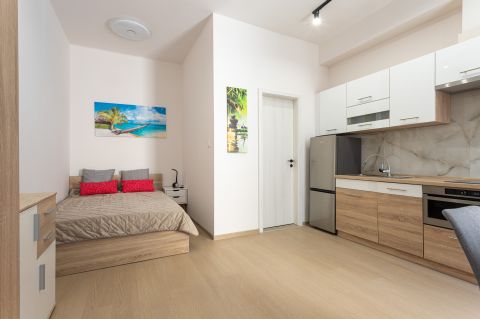 Az ingatlan teljesen berendezett, hűtő-fűtő klímával (H tarifával), konyhája gépesített (főzőlap, sütő, mosogatógép, hűtőszekrény, páraelszívó).
