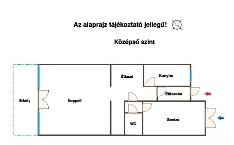- A középső szinten nappali, 7 m2-es kertre néző erkéllyel, konyha + étkező, külön wc, valamint egy zárt szimpla garázs található, ami a házból belső átjárással megközelíthető.