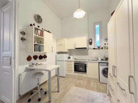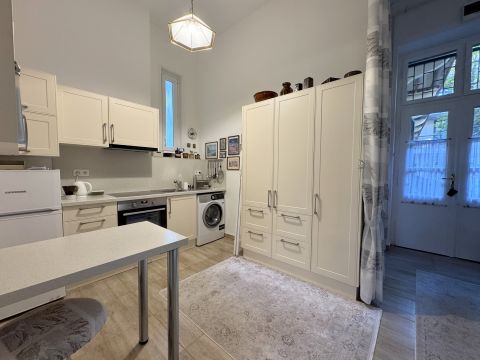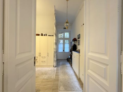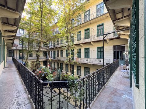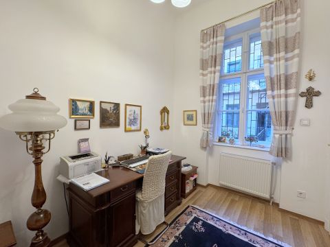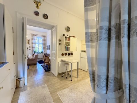 Located in Budapests 6th district, on Felsőerdősor Street, between the elegant Andrássy Avenue and Király Street, this first-floor, quiet apartment with a green view is for sale in a well-maintained building without a lift.