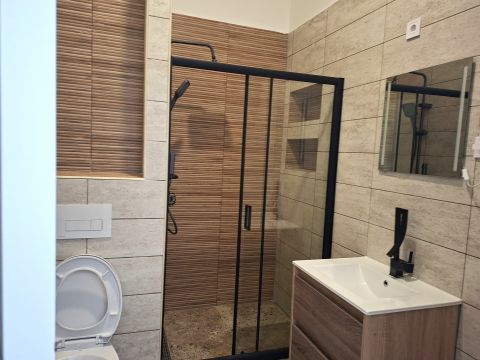Ez a 45 m²-es, félemeleti lakás teljes körű felújításon esett át nem csak szép, hanem műszakilag is teljesen rendben van. Modern, letisztult design, minőségi anyagok és praktikus elrendezés vár rád.