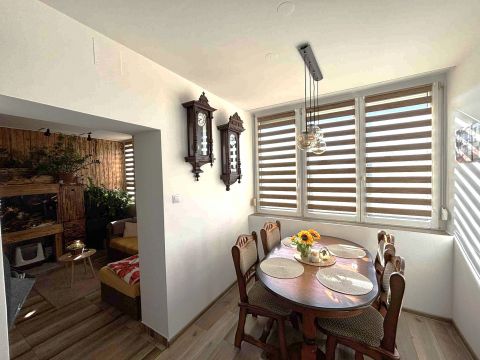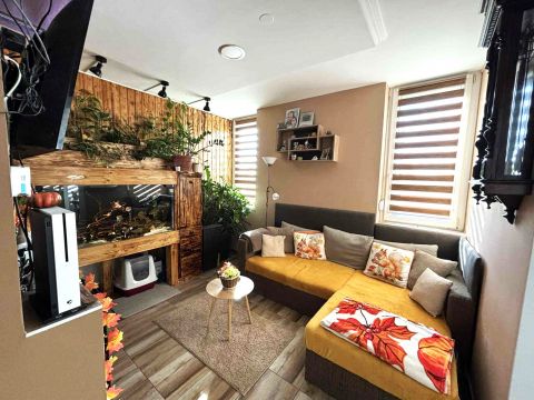 Az ingatlant a jelenlegi tulajdonosok egy 40 és egy 52nm-es lakás egybenyitásával hozták létre. Beépítettek hozzá egy 8nm-es előszobát a lépcsőházból, mely így összesen 100 nm. Fűtése többrétű, rendelkezik 2 újrarakott cserépkályhával, 1 új kandallóval valamint 2 db hűtő- fűtő klímával. A fürdőszobában törölköző szárítók biztosítják a megfelelő hőmérsékletet.