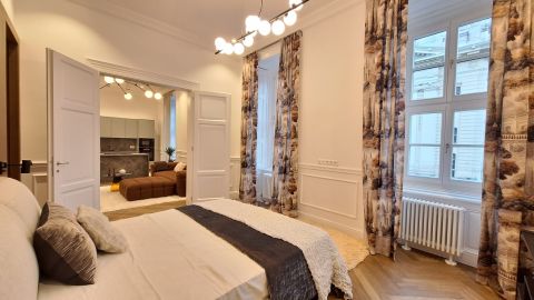 A sophisticated, classic/modern, elegant and sunny apartment for rent in the immediate vicinity of Szabadságtér, a real rarity (90 m2, 2 rooms)!