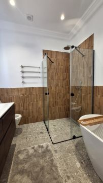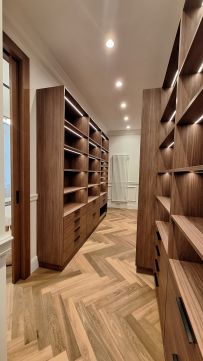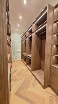 A klasszikus és a kortárs stílus finom egyvelege, a barna és a lágy színei vegyülnek a lakásban.