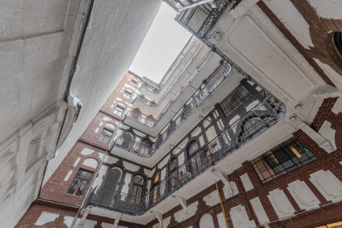 The apartment is on the 2nd floor of a 4-story, lift-equipped, well-maintained, Secessionist-style building.