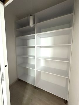 A lakás letisztult minimalista stílusban berendezett, minőségi bútorokkal és gépekkel felszerelt,.
