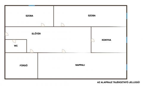 Elosztás: 3 szoba (az egyik jelenleg gardróbként funkcionál nagyon praktikus megoldás), külön konyha, fürdőszoba és külön WC.