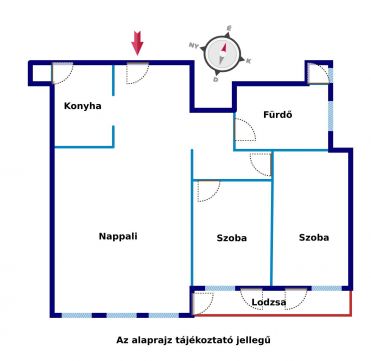 A praktikus alaprajzú, világos otthon amerikai konyhás nappali, 2 háló, lodzsa kialakítású, melyhez előszoba, fürdőszoba, kamra és háztartási helyiség tartoznak.