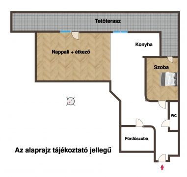 A lakás belsőépítész tervei alapján került felújításra és átalakításra. A nappali és a konyha-étkező egy tágas légtérben található, dupla erkélyajtóval a teraszra. A hálószobából szintén van kijárat a teraszra. Külön vendég WC helyiség került kialakításra.