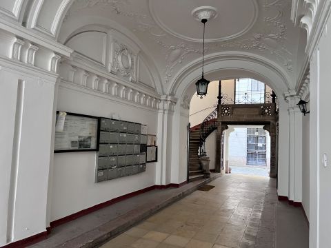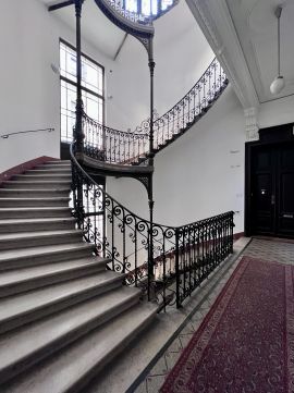 A homlokzat szép állapotú, a lépcsőház karbantartott, gazdagon díszített.