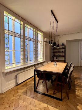 A lakás átalakítása/felújítása közben fő szempont volt a mai kor elvárásainak megfelelni, ugyanakkor megtartani a kor utánozhatatlan stílusjegyeit az ingatlanon belül, a beltéri ajtókat, EREDETI fa parkettát, az étkezőben a díszített ablakot és a tágas tereket. Mindezek mellet modernizálták a vezeték hálózatot, a fűtés rendszert a konyhát és két fürdőszoba került kialakításra.