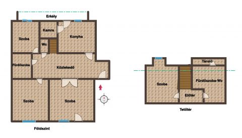 - Alsó szint: 96 m², tetőtér: 40 m²