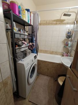 A fürdőszobában kád található, de a zuhanyzás is kényelmesen megoldott a felszerelt fali zuhanykarnak köszönhetően.