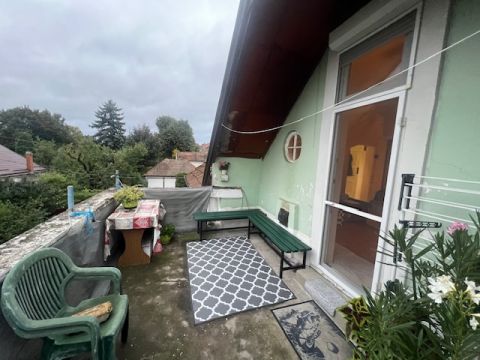 2. Emelet: tágas konyha-étkező, egy erkélyes nagy szoba gardróbbal, külön wc és nagyméretű padlástér.