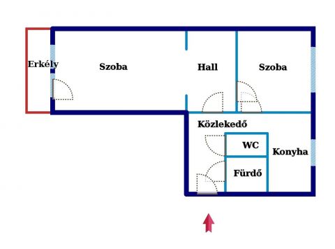A lakás egy liftes panelház nyolcadik emeletén található. Két szoba hall, konyha étkezővel, előszoba, fürdő, és külön WC, erkélyes.