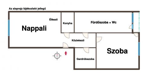 A lakás egy rendezett, téglaépítésű társasház 2. emeletén helyezkedik el, erkéllyel, nappalival, külön hálószobával, valamint egy praktikus gardróbszobával.