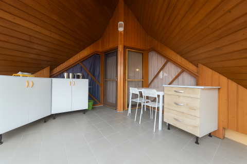 A lakáshoz tartozik egy 11 m²-es fedett terasz, amely jól használható pihenésre, reggeli kávézáshoz vagy akár gyereksarok kialakítására.