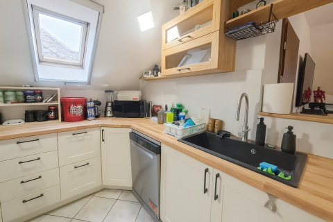 Iskola és óvoda sétatávolságra tágas tetőtéri lakás Ganzkertvárosban