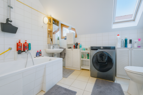 A lakás tulajdoni lap szerint 76 m²-es, nappali + 2 szobás, a valóságban azonban nappali + 3 különálló szobával rendelkezik, valamint egy saját padlástérrel, amely alapító okirat szerint is a lakáshoz tartozik. Ez a kialakítás kifejezetten ideális gyermekes családoknak, illetve azoknak, akiknek szükségük van egy külön dolgozó- vagy vendégszobára.