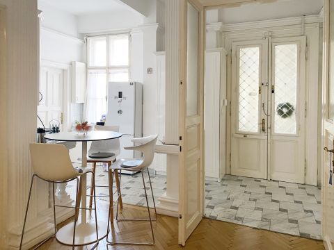 A 93 m2-es lakást a nagyvonalú terek és minőségi anyagok jellemzik.
