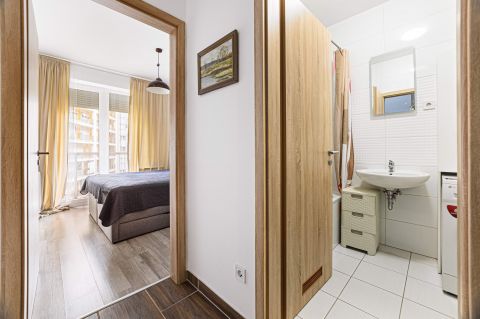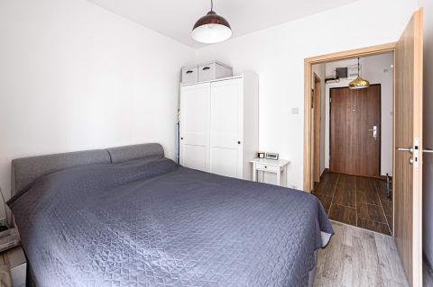 Az előszoba végéről nyílik a hálószoba, itt dupla méretű ágy, ruhásszekrény és lerakó-asztalka van.