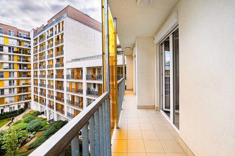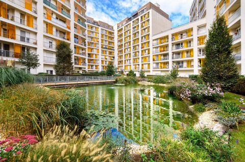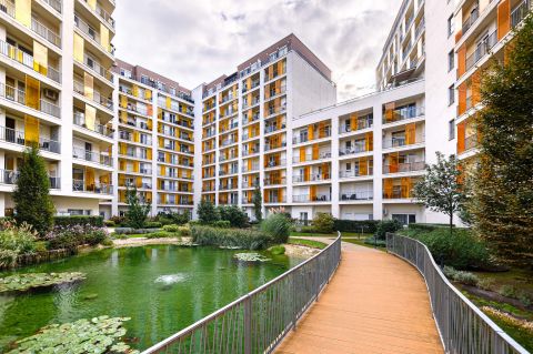 Az ingatlan tényleges méretei: lakás: 37,51 nm, erkély további: 6,49 nm. Mind a hálóból, mind pedig az amerikai konyhás nappaliból van kijárás a nagyméretű erkélyre, ahonnét a csodálatos és ritka nagyméretű belső parkra látunk, ahol liliomokkal ékesített tó is van híddal.
