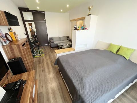 A zöldövezetben található ingatlan egy szigetelt társasház negyedik emeletén található. Az eredetileg másfél szobás lakást, a jelenlegi tulajdonosa átalakíttatta, így jelenleg egy szoba, konyha- étkező, fürdő-wc, kamra helyiségekből áll. (Igény esetén visszaalakítható másfél szobássá)