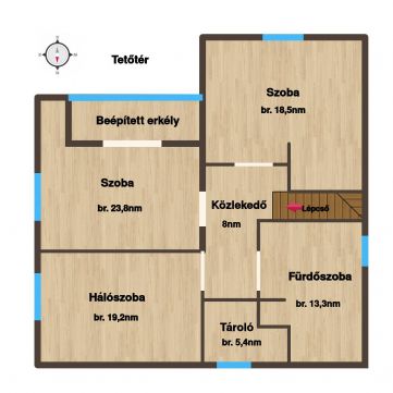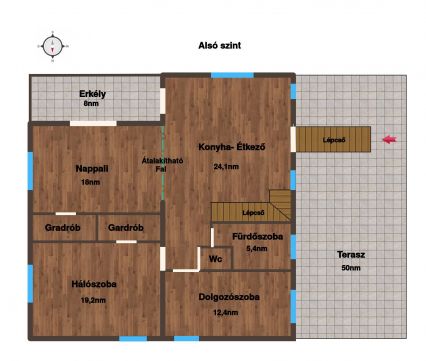 8 m²-es erkély, közel 50 m²-es terasz