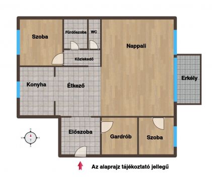 Tágas nappali + 2 hálószoba + gardróbszoba