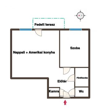 - a lakáshoz tartozik egy 8 nm-es, fedett, elkerített terasz