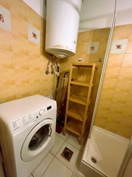 The apartment is situated in a well-maintained, classic bourgeois-style elevator building and is furnished and equipped, ready for its new tenants. Its practical layout provides a comfortable living space for daily activities, work, and relaxation. The kitchen is fully equipped, and the bathroom features a shower and a washing machine for added convenience.