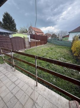 A nappaliból közvetlenül megközelíthető, kb. 60 m²-es, füvesített, saját használatú kert kellemes, privát teret biztosít pihenéshez vagy családi programokhoz.