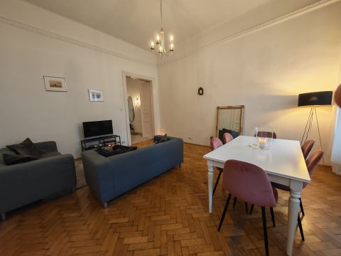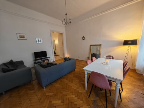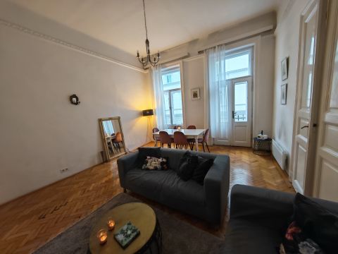 Eladó a VI. kerületben, a Jókai utca 24.-ben, a pezsgő belváros egyik legjobb részén egy 67 m²-es, nappali + 2 hálószobás, teraszos lakás egy gyönyörű, rendezett épület második emeletén.
