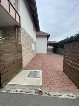 Elektromos kapun keresztül lehet a saját udvaron levő felszíni beállóra bemenni.