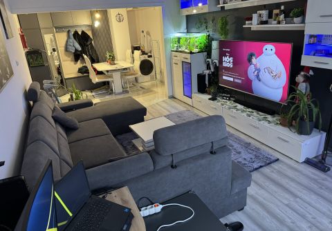 Az ingatlan szinte teljesen fel lett újítva 2024 elején, új burkolatok, konyhabútor (asztalos által egyedileg tervezve és beépítve), valamint ahogy a képeken is látszik, ki lett alakítva egy nagyobb tér a nappalinak, előszobának, étkezőnek, így kifejezetten tágas és világos lett.