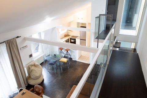In a quiet yet centrally located part of Budapests District I, a beautifully renovated loft-style apartment with a gallery level is available for rent. The property combines the comfort of downtown living with a calm and exclusive residential environment.