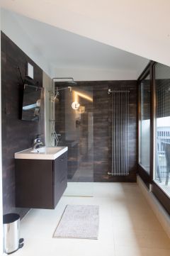 A lakás tágas, világos terekkel, nagy belmagassággal és modern kialakítással rendelkezik. A lebegő lépcső és a galériaszint különleges karaktert ad az ingatlannak, míg a gondosan kiválasztott bútorok elegáns, mégis otthonos hangulatot teremtenek.